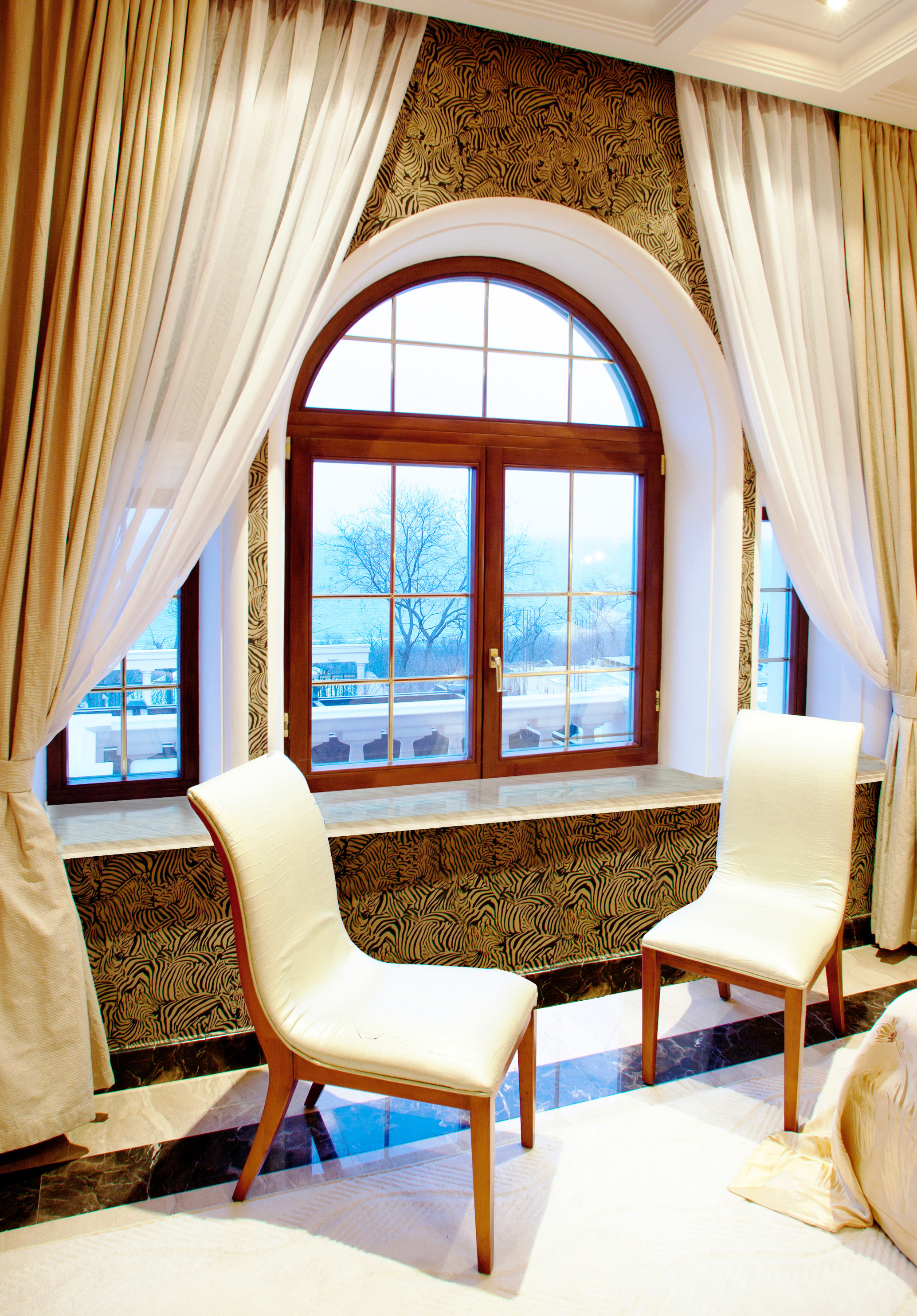 Белое дерево покоряет нежной красотой и натуральностью красок. Природное сочетание матовой белоснежной основы и серовато-коричневых прожилок в текстуре дуба освежает интерьер и добавляет оконному пространству легкости