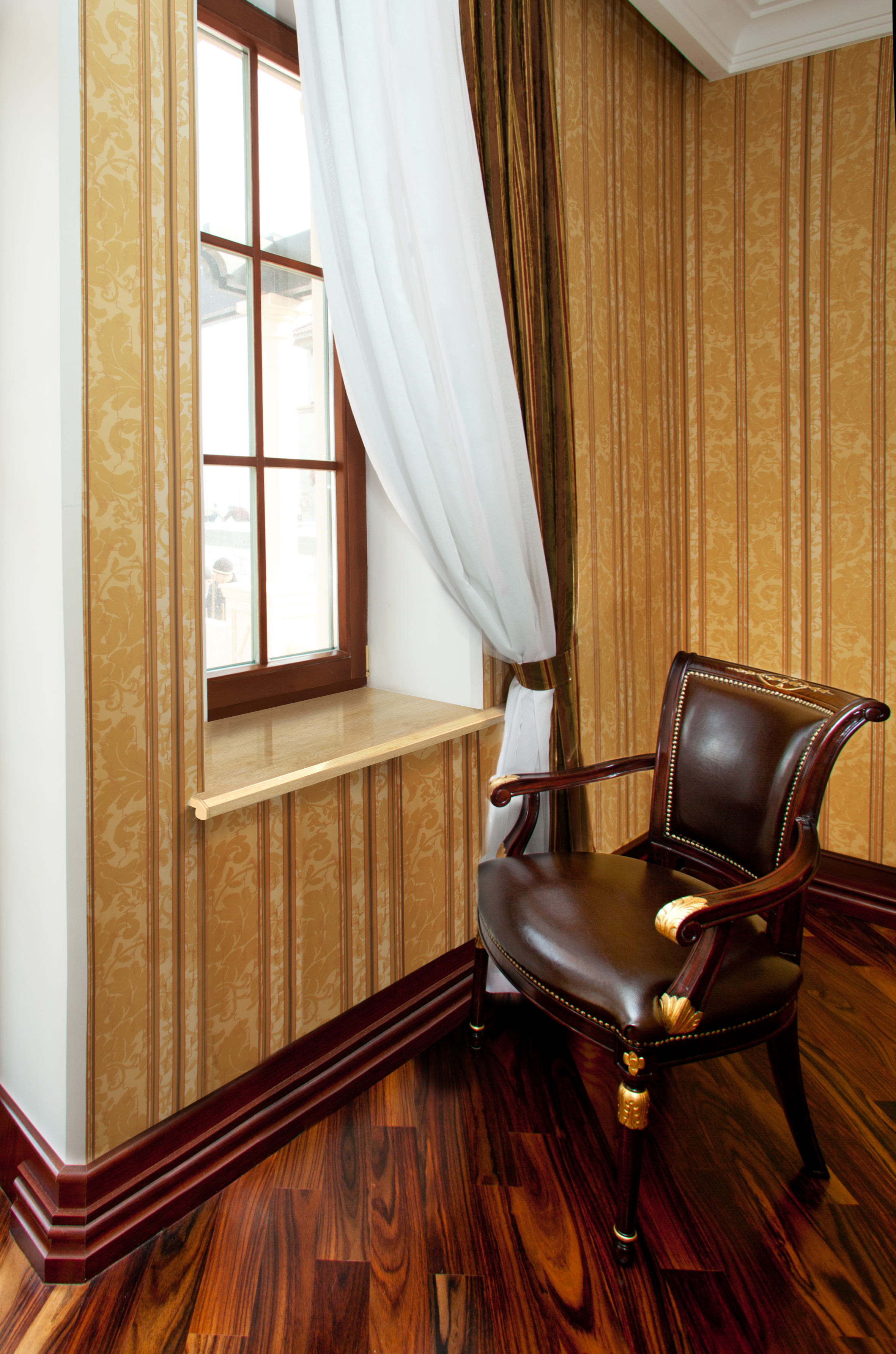 Декор Lalbero dell’oro, великолепная имитация золотого дуба, придает особую элегантность и благородство интерьеру. Подходит и к деревянным евроокнам